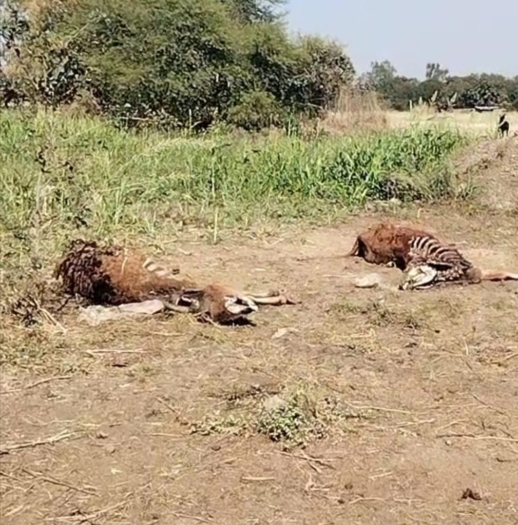 आधा दर्जन गौ माता के शव भाऊखेड़ी पंचायत की गौ शाला में खुले जमीन में पर पड़े मिले।