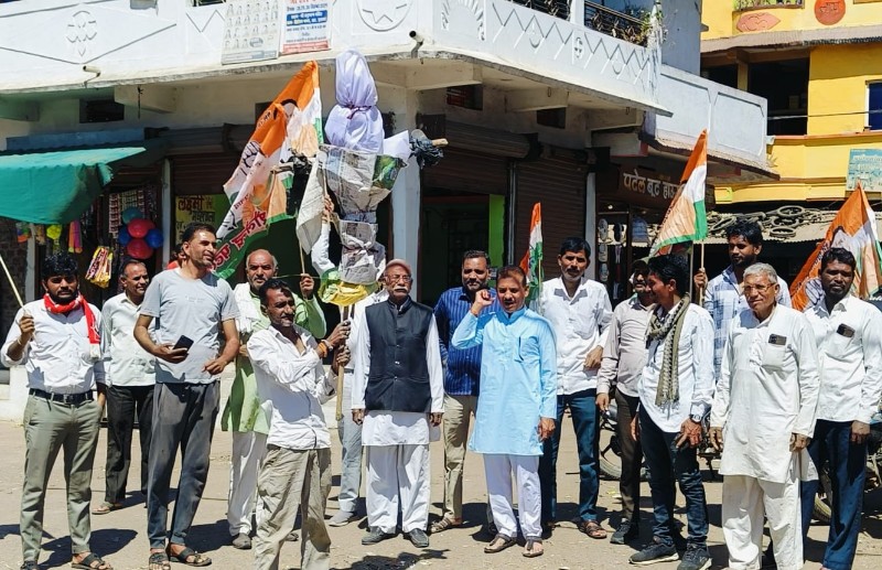 पंचायत मंत्री प्रहलाद पटेल के ‘भिखारी’ वाले बयान पर ब्लॉक कांग्रेस कमेटी ब्रिजिश नगर ने किया पुतला दहन