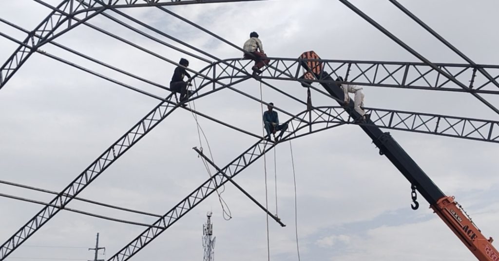 सीहोर/इछावर: 7 जून को दशहरा मैदान इछावर में केन्द्रीय कृषि मंत्री शिवराज सिंह चौहान का कार्यक्रम आयोजित हैं।कार्यक्रम की तैयारी के लिए डोम लगाया जा रहा है,जिसमें मजदूर ऊंचाई पर बिना सेफ्टी के कार्य कर रहे हैं।साई नाथ टेंट हाउस सीहोर जिनके मालिक अजय सोनी के द्वारा डोम का कार्य किया जा रहा है।मौके पर ठेकेदार अकरम खान के द्वारा पूरी डोम को लगवाया जा रहा है।ठेकेदार अकरम से जब मजदूरों की सेफ्टी के संबंध में पूछा गया तो उनका कहना था कि किसी प्रकार की दुर्घटना के जि़म्मेदार हम रहेगें। इसी प्रकार बिना सेफ्टी के कई बार हमने बड़े बड़े डूम लगवाए है।