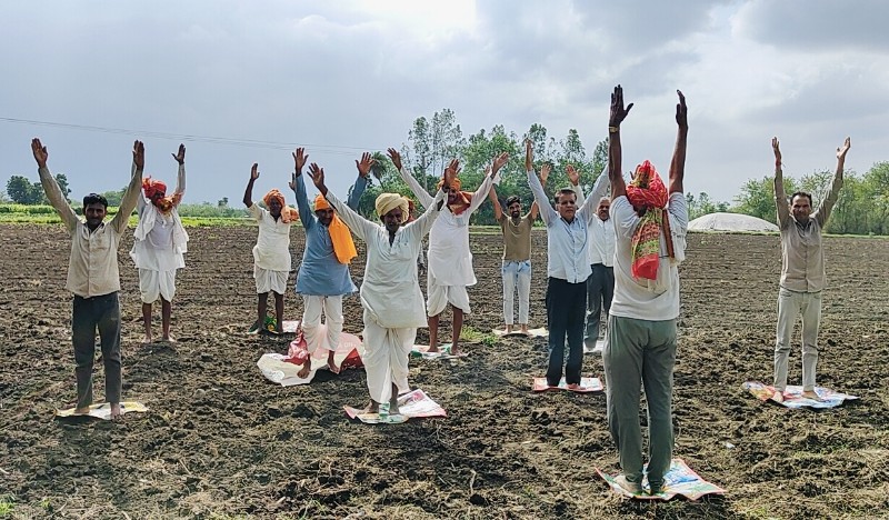 जिले के किसान भाईयों ने भी खेत पर ही मनाया योग दिवस