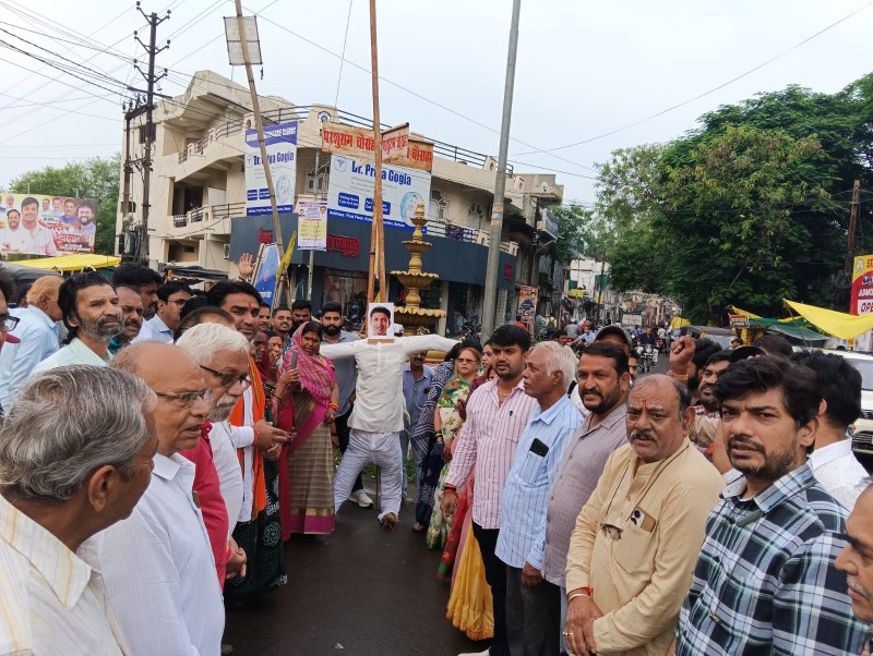 पीसीसी चीफ जीतू पटवारी का भाजपा ने फूंका पुतला