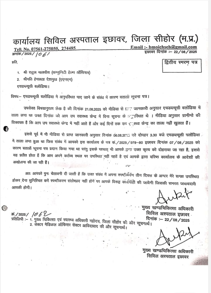 जब इस मामले पर बलोंडिया उपस्वास्थ्य केंद्र प्रभारी सीएचओ राहुल मालवीय से संपर्क करने की कोशिश की गई तो उनसे दूरभाष पर बात नहीं हो पाई।