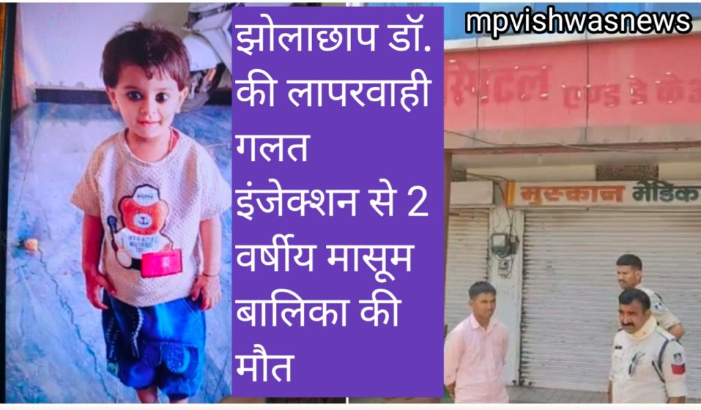 जानकारी के अनुसार ग्राम पिपलिया मीरा के निवासी गजराज कुशवाहा ने कोतवाली थाना पुलिस को लिखित आवेदन दिया है, जिसमें कहा है कि उनके बड़े भाई कन्हैयालाल की बेटी दीक्षा आयु 2 वर्ष को गांव से 3 किलोमीटर दूर ग्राम बरखेड़ी के डॉक्टर अशोक विश्वकर्मा मुस्कान क्लिनिक ने 2 अक्टूबर को सुबह 10:30 बजे खांसी बुखार के कारण दिखाने पर इंजेक्शन लगाया गया।