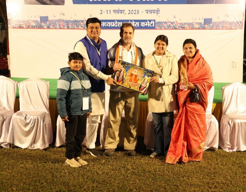 पचमढ़ी/मध्य प्रदेश। मध्यप्रदेश के पचमढ़ी में आयोजित सर्जन संगठन के विशेष कार्यक्रम के दौरान श्रद्धा और सौहार्द का अनोखा संगम देखने को मिला। इस अवसर पर जिला कांग्रेस अध्यक्ष राजीव गुजराती ने कांग्रेस नेता राहुल गांधी को सीहोर के प्रसिद्ध चिंतामन गणेश जी का चित्र भेंट कर सीहोर आगमन का सादर निमंत्रण दिया।