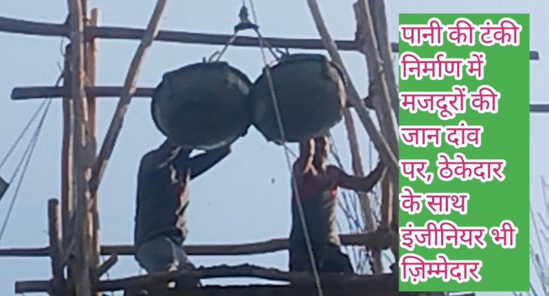 पानी की टंकी निर्माण में मजदूरों की जान दांव पर, ठेकेदार के साथ इंजीनियर भी जि़म्मेदार