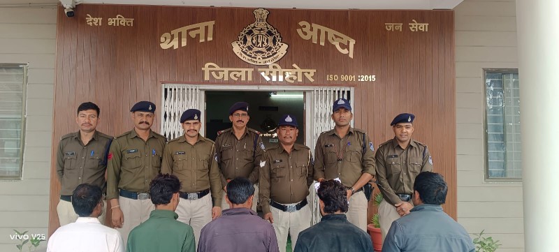 आष्टा/सीहोर।थाना आष्टा मे गत रात्रि नानकपुर ग्राम से सूचना प्राप्त हुई की पांच व्यक्ति संदिग्ध अवस्था में हथियार रखे देखे गए है जो बाहरी व्यक्ति है ओर वह सभी किसी बढ़ी घटना लूट, चोरी घटित करने की बात करते रास्ते से जा रहे है। सूचना से तत्काल पुलिस अधीक्षक सीहोर दीपक शुक्ला,अति पुलिस अधीक्षक श्रीमती सुनीता रावत, sdop आष्टा प्रवीण चडोकर को अवगत कराया गया। पुलिस अधीक्षक दीपक शुक्ला द्वारा थाना प्रभारी आष्टा गिरीश दुबे को संदिग्ध व्यक्तियों की तत्काल धर पकड़ हेतु निर्देशित किया गया। थाना प्रभारी गिरीश दुबे द्वारा अपने थाने बल की दो टीमे गठित की गई। सूचना पर थाना आष्टा की दोनों पुलिस टीमे ग्राम नानकपुर यात्री प्रतीक्षालय के पास पहुंची तो प्रतीक्षालय में बैठे पांच संदिग्ध व्यक्ति वहां से भागने का प्रयास कर रहे थे।जो पांचो व्यक्तियों को दोनों पुलिस टीम के कुल 09 सदस्यो द्वारा स्थानीय ग्रामवासियों की मदद से घेराबंदी कर पकड़ा गया।पकड़े गए पांचो संदिग्ध व्यक्तियों के पास घातक हथियार तलवार, धारदार चाकू,नुकीला सब्बल, लोहे की राड ओर एक लोहे की नक़ब (ताले, कुंदे तोड़ने का औजार )पाए गए। पांचो आरोपियों से प्राप्त घातक हथियारों को वहां मौजूद ग्राम वासियों के समक्ष जप्त कर सभी आरोपियों से पूछताछ की गयी जिन्होंने देर रात्रि नानकपुर गाँव से आगे कन्नोद रोड़ पर स्थित पेट्रोल पंप लूट करने की घटना करने जाना बताया।उक्त पेट्रोल पम्प लूट की घटना की योजना मुख्य रूप से आरोपी शराफत अली निवासी हरियाणा द्वारा तैयार की गयी थी जो पूर्व मे देवास जिले के खाचरोद, सतवास,कन्नोद गाँवों मे हड़म्बा चलाने आता था ओर आरोपी अरमान से पहचान हुई थी। शराफत अली ने ही अरमान को पेट्रोल लूट की घटना करने की योजना मे शामिल किया ओर अरमान ने अपने अन्य साथियों साबिर, ब्रजेश, वक़ील शाह को पेट्रोल पंप लूट की घटना करने के लिए शामिल किया गया।