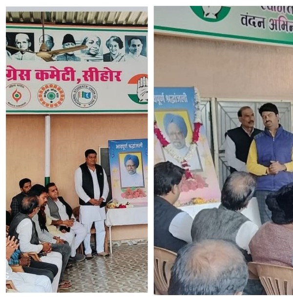 देश भर में कांग्रेस नेता एवं कार्यकर्ताओं द्वारा श्रद्धांजलि सभा आयोजित की जा रही है। एवं पूर्व प्रधानमंत्री स्व. डॉ मनमोहन सिंह के कार्यकाल की उपलब्धियां एवं उनके व्यक्तित्व को याद किया जा रहा है। इसी सिलसिले में सीहोर जिला कांग्रेस कमेटी द्वारा भी बस स्टैंड स्थित कांग्रेस कार्यालय में श्रद्धांजलि सभा आयोजित की गई।